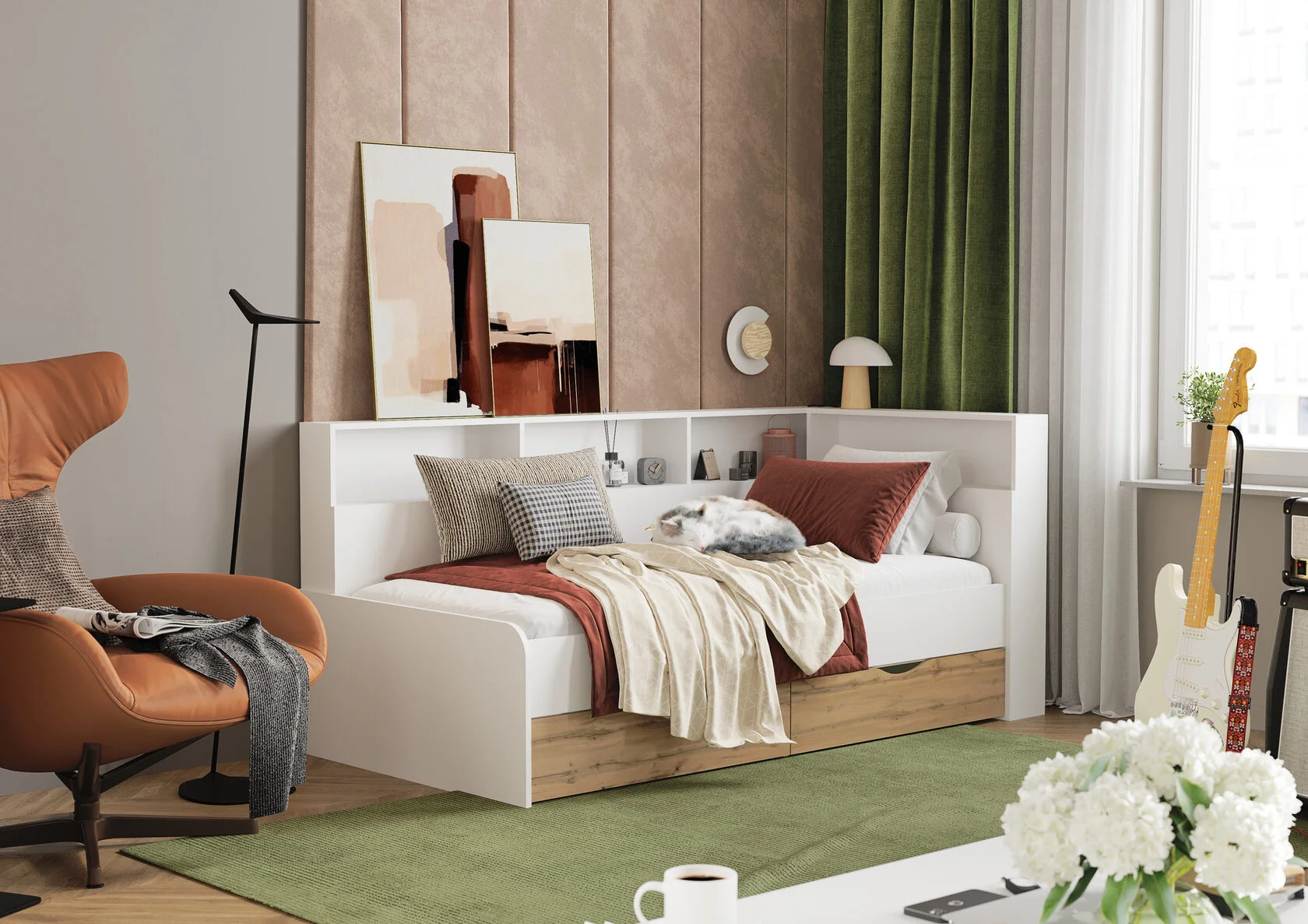 Стильная кровать «Юта» - идеальное решение для организации пространства и добавления нотки современности в комнату. Ее элегантный дизайн сочетает в себе функциональность и эстетику, предоставляя удобство хранения и украшения в одном. С интегрированными полками Вы сможете легко разместить свои любимые книги, фоторамки, коллекции и другие предметы, создавая яркий и персональный интерьер.