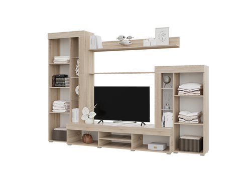 Стильная современная гостиная Дельта, которая украсит вашу комнату. Корпус и фасады ЛДСП. Цвет: Цемент светлый\Белый. Размер: 2648х1872х456 мм