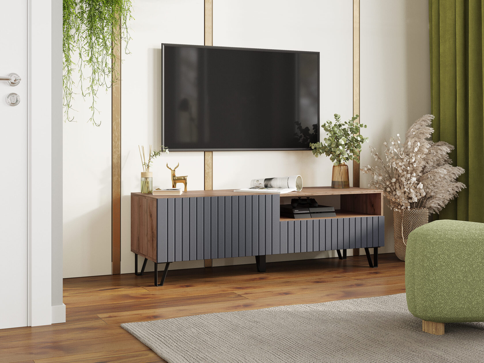 Тумба ТВ "Орегон" - стильная и утонченная тумба с элегантными линиями и хорошо продуманным функционалом. Ее минималистичный дизайн, и современное сочетание цветов, позволяют легко вписать ее в любой интерьер, придавая помещению изысканный вид. Благодаря системе открывания «push to open» изделия выполнены без ручек.