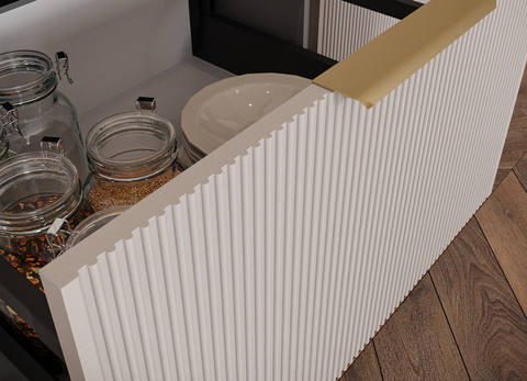 Коллекция «Мелисса» — это интригующая симфония изысканности и функциональности, созданная для тех, кто стремится к непревзойденной элегантности в своей кухне. Каждая деталь этой коллекции вдохновлена гармонией форм и прекрасно сбалансирована. Утонченная вертикальная рельефная фрезеровка фасадов придает им неповторимую глубину и изысканность, создавая зрительное впечатление произведения искусства.