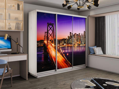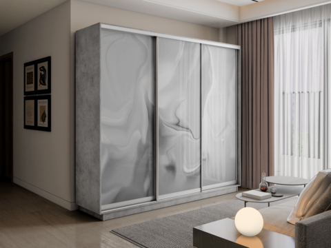 Фасады дверей можно выбрать. Толщина ДСП корпуса — 16 мм. Это оптимальная толщина ДСП. Шкаф получается прочным, при этом система направляющих и ролики не изнашиваются от избыточной тяжести. Используется ДСП австрийского производителя Egger. Ударостойкая кромка ПВХ защищает торцы шкафа от сколов и повреждений. Алюминиевый профиль обеспечивает плавный ход дверей и продлевает срок службы шкафа. Задняя стенка исполнена из плиты HDF, которая не прогнется со временем. Отдельный цоколь позволяет поставить шкаф вплотную к стене. Безопасные стекла и зеркала не осыпаются даже при сильном ударе благодаря противо осколочной пленке.