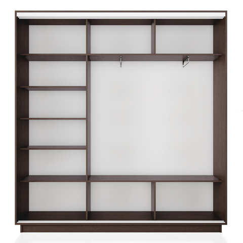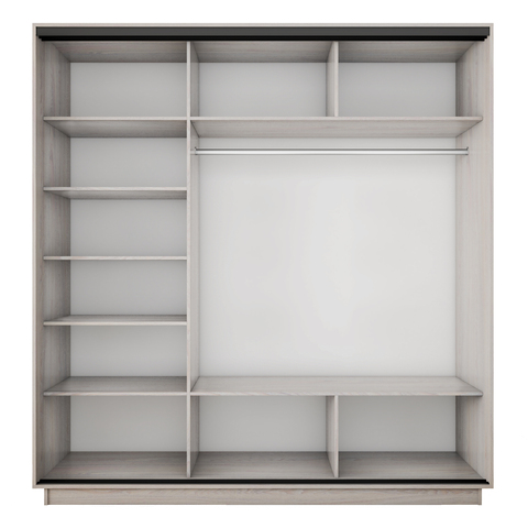 Фасады дверей можно выбрать. Толщина ДСП корпуса — 16 мм. Это оптимальная толщина ДСП. Шкаф получается прочным, при этом система направляющих и ролики не изнашиваются от избыточной тяжести. Используется ДСП австрийского производителя Egger. Ударостойкая кромка ПВХ защищает торцы шкафа от сколов и повреждений. Алюминиевый профиль обеспечивает плавный ход дверей и продлевает срок службы шкафа. Задняя стенка исполнена из плиты HDF, которая не прогнется со временем. Отдельный цоколь позволяет поставить шкаф вплотную к стене. Безопасные стекла и зеркала не осыпаются даже при сильном ударе благодаря противо осколочной пленке.