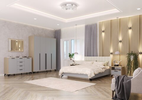 Состав: Шкаф 1800мм; Комод 1360мм; Кровать с настилом ЛДСП-1400мм; Тумба прикроватная 500мм-2шт.